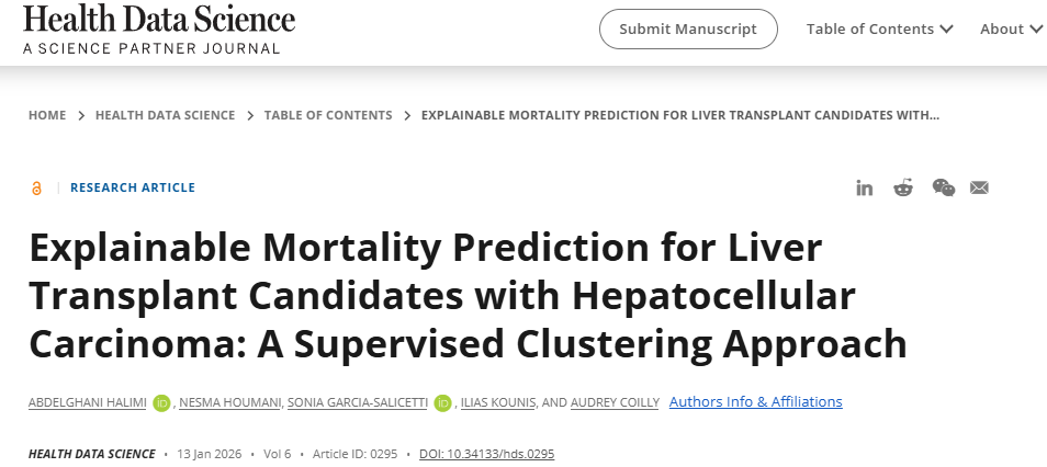 تم نشر النتائج، التي تحمل عنوان "التنبؤ بالوفيات القابلة للتفسير لمرشحي زراعة الكبد المصابين بسرطان الخلايا الكبدية: نهج التجميع الخاضع للإشراف"، في مجلة علوم البيانات الصحية.