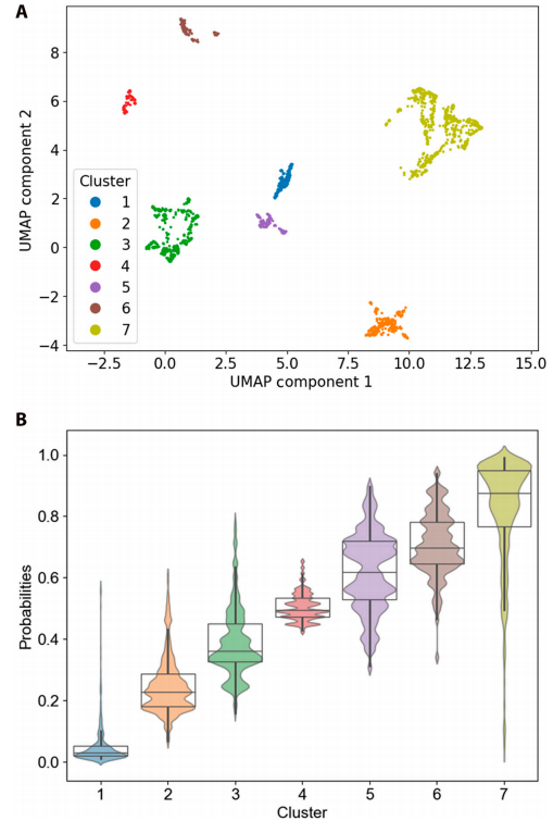تم تحديد العدد الأمثل للمجموعات من خلال الفحص الأولي باستخدام مؤشرات كمية مثل معامل سيلويت ومؤشر ديفيز-بولدين، ثم التحقق سريريًا من خصائص التجميع من خلال تحليل SHAP. وفي النهاية، تم تحديد العدد الأمثل للمجموعات بسبع مجموعات.