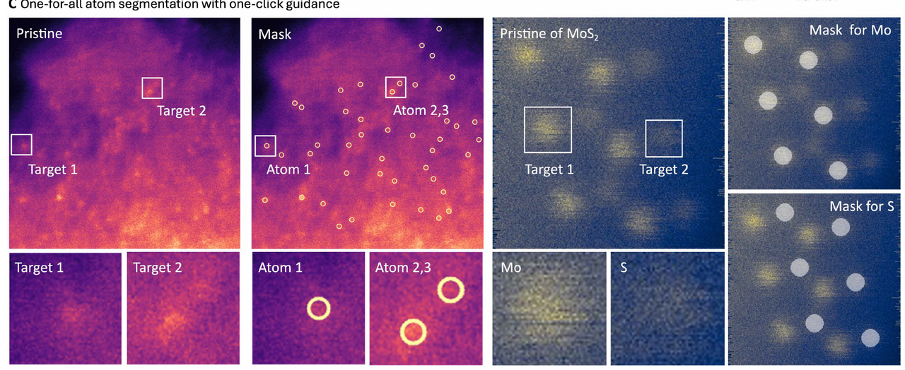 ومن الأمثلة التمثيلية إطار عمل ATOMIC (التقنية المستقلة للمجهر الضوئي والتمييز الذكي) الذي اقترحه وانغ هاوتشي من جامعة ديوك وفريق رين تشيتشو في معهد ماساتشوستس للتكنولوجيا في عام 2025.هذا إطار عمل متكامل يدمج نموذجًا أساسيًا لتحقيق توصيف كامل للمواد ثنائية الأبعاد دون الحاجة إلى عينات. يدمج النظام نموذجًا بصريًا أساسيًا (أي نموذج Segment Anything)، ونموذجًا لغويًا موسعًا (أي ChatGPT)، وتجميعًا غير مُشرف، وتحليلًا طوبولوجيًا، مما يُؤتمت التحكم في المجهر، ومسح العينات، وتجزئة الصور، والتحليل الذكي من خلال هندسة سريعة دون تدريب إضافي. عند تحليل عينات MoS₂ النموذجية، حققت الطريقة دقة تعرّف وتجزئة أحادية الطبقة بلغت 99.71 TP3T، وهي دقة تُضاهي دقة المحترفين.