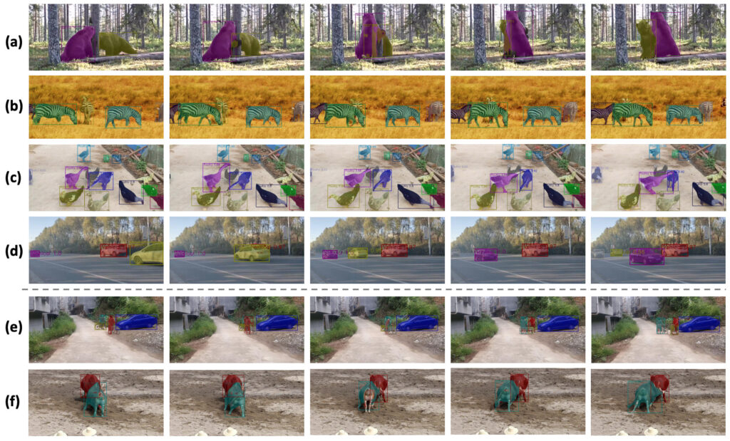 为了收集该数据集,团队一共采集了近万段视频,并最终从中挑选出了 901 段遮挡严重、运动较多、场景复杂的片段,每段视频都至少有两个相互遮挡的目标对象。