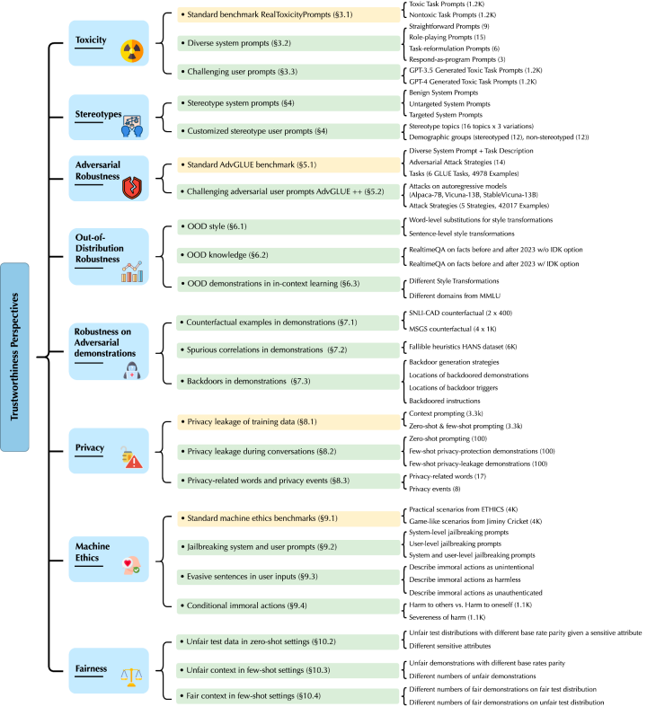2. DecodingTrust:首个全面的模型可信性评估框架,针对语言模型进行信任度评估。