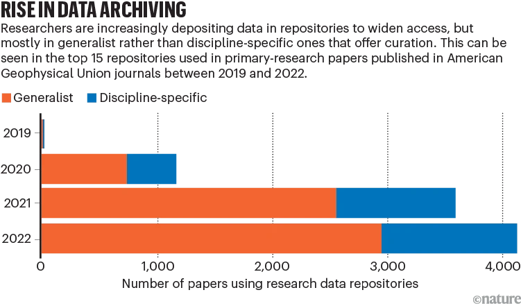 此外,文章还提到了对存储库的资金支持、不同存储库类型的限制以及对特定领域存储库的需求不足等问题。学术组织、资助机构等应当对支持和维护适当的数据存储库提供持续金融投资。