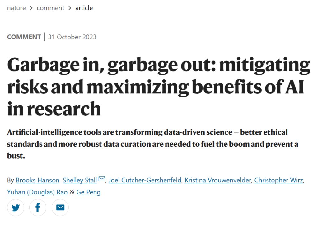研究人员需要在每个阶段都注重透明度:分享数据和代码、考虑进一步的测试以确保可复制性和可重复性、应对方法中的风险和偏差、以及报告不确定性。这些步骤需要更详细地描述方法。为确保全面性,研究团队的人员构成中应包含使用各类数据的专家,同时邀请参与提供数据或可能受研究结果影响的社区成员。例如,有个基于人工智能的项目结合了加拿大塔鲁人的传统知识和非本土方法收集的数据,以确定最适合进行水产养殖的地区 (详见 go.nature.com/46yqmdr)。