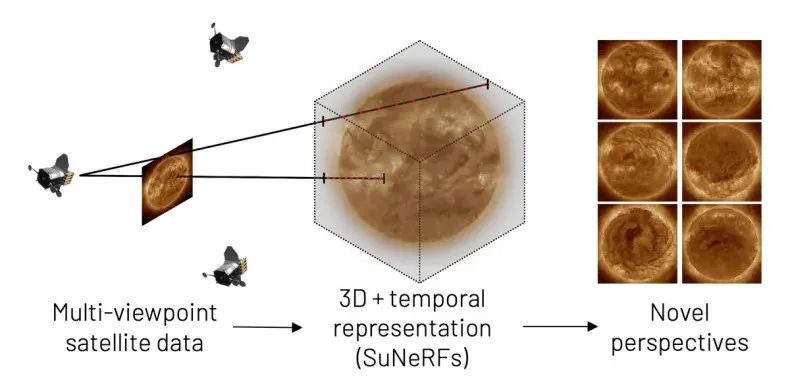 科罗拉多州国家大气研究中心 (NCAR) 的研究人员利用 NeRFs 神经网络,将太阳的二维图像转换成三维重建图像,首次揭示了太阳的两极。