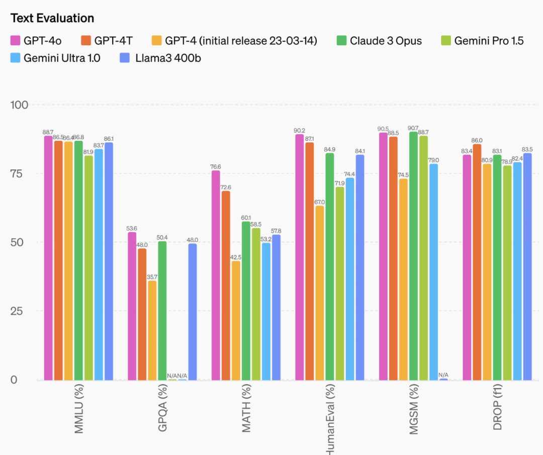 此外,GPT-4o 的推理能力也有大幅提升,官方数据表示,GPT-4o 在 0-shot COT MMLU(常识题)中创造了 88.7% 的新高分。