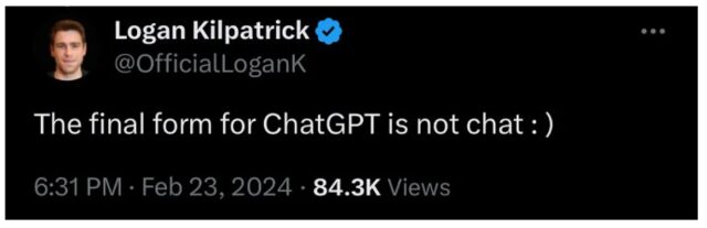 早在今年 2 月,前 OpenAI 开发者关系负责人就提及,ChatGPT 的终极形态不仅仅是聊天。
