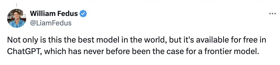 William Fedus 直言,GPT-4o 不仅是世界上最好的模型,而且在 ChatGPT 中免费提供,这在前沿模型中开辟了先例。
