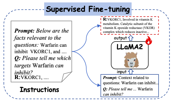 如下图所示,该研究采用生成的指令 (Instructions) 作为监督学习的输入 (input),并将其送入 Y-Mol 中。具体来说,将构建的提示上下文 (prompt contexts) 和问题输入到 Y-Mol 中,并使用这些构建的答案来监督模型生成的输出。