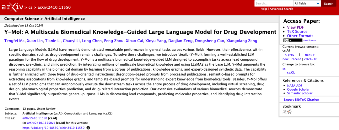 该研究以「Y-Mol: A Multiscale Biomedical Knowledge-Guided Large Language Model for Drug Development」为题,已在 arxiv 发表预印本。