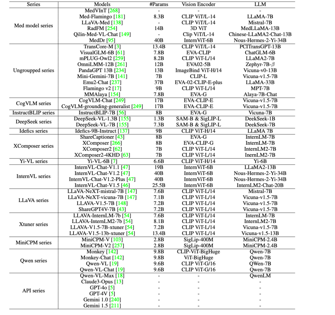 为了进一步推动 AI 在医疗领域的临床应用,研究人员在 GMAI-MMBench 上评估了 44 个开源的 LVLMs(其中包括 38 个通用模型和 6 个医学特定模型),以及商用闭源 LVLMs,如 GPT-4o 、 GPT-4V 、 Claude3-Opus 、 Gemini 1.0 、 Gemini 1.5 和 Qwen-VL-Max 。