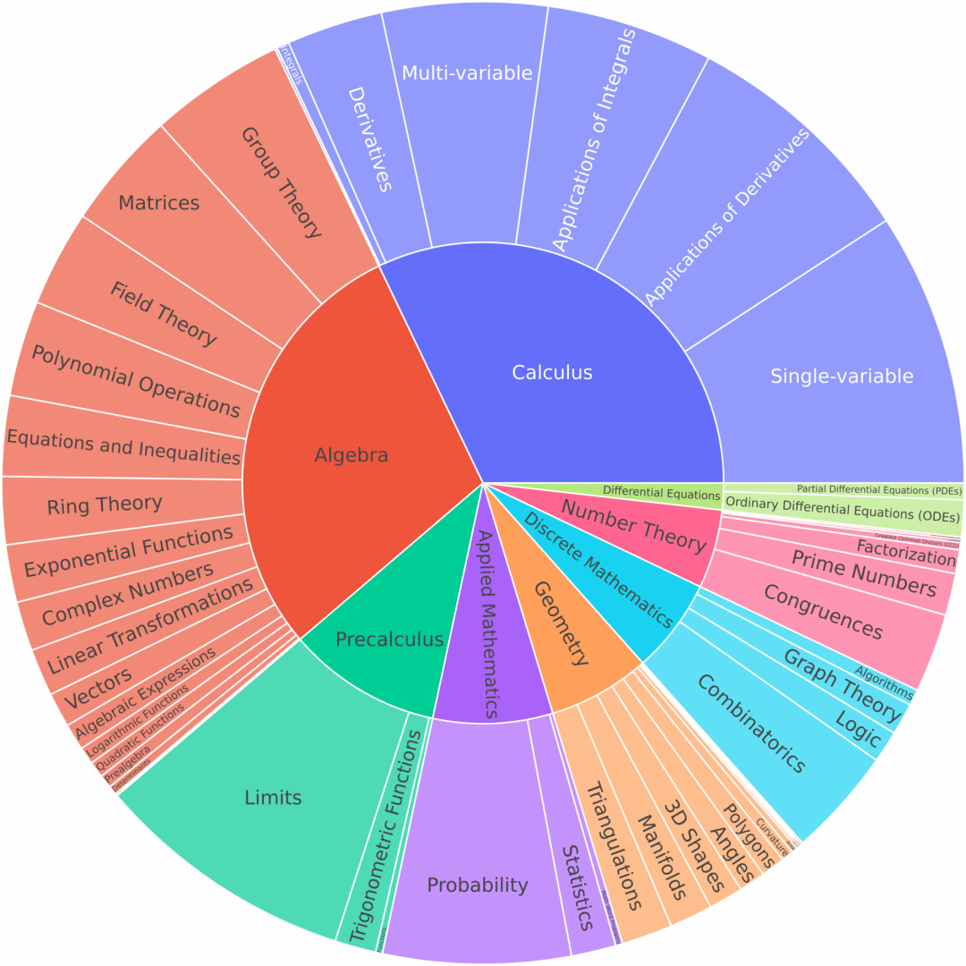 该数据集重点关注 5-9 级难度的数学问题,涵盖代数、微积分、数论、几何、概率、离散数学等多个领域,侧重挑战复杂推理能力,该数据集还通过语义匹配针对常见基准进行了细致的去污染处理,最大限度减少测试集泄露并促进模型公平评估。