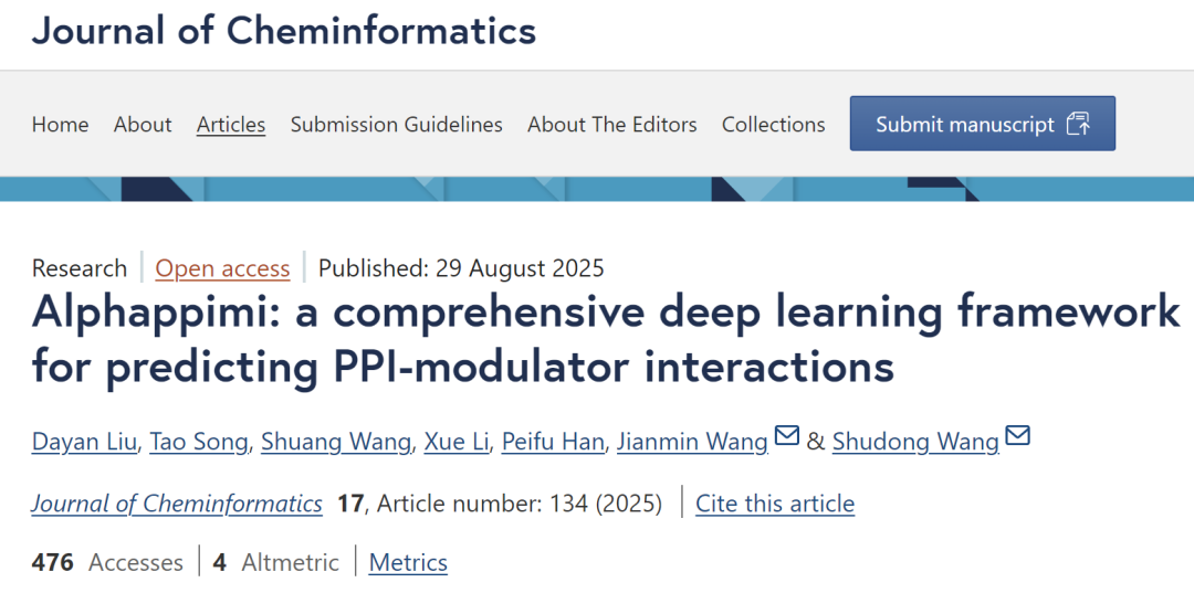 相关研究成果以「Alphappimi: a comprehensive deep learning framework for predicting PPI-modulator interactions」为题,发表于 Journal of Cheminformatics 。