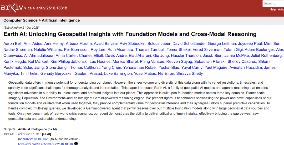 相关研究成果以「Earth AI: Unlocking Geospatial Insights with Foundation Models and Cross-Modal Reasoning」为题,预印本已发表于 arXiv 。