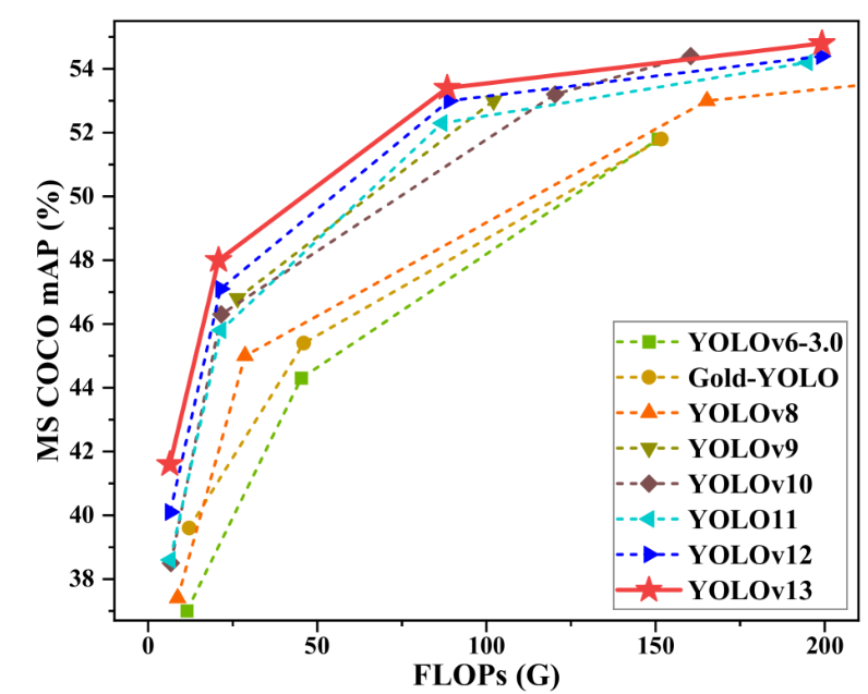 YOLOv13 在 MS COCO 和 Pascal VOC 等主流数据集上实现了全面领先,展现出更强的泛化能力与部署实用性,在复杂场景中的应用提供了更领先的性能选择。