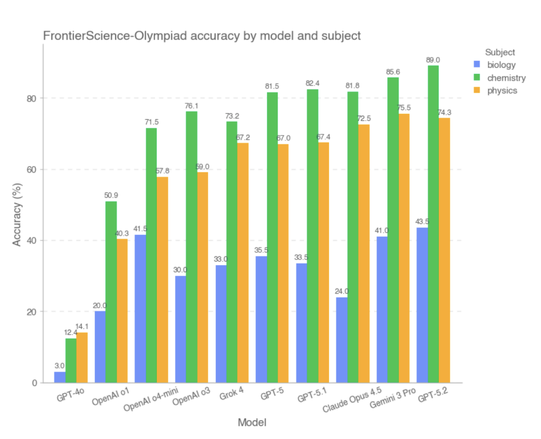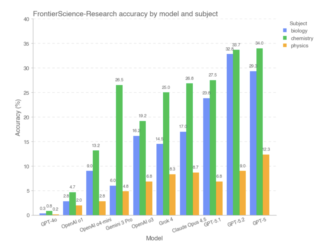 GPT-5 全面领先,OpenAI 发布 FrontierScience,「推理+科研」双轨检验大模型能力