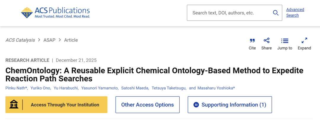 相关研究成果以「ChemOntology: A Reusable Explicit Chemical Ontology-Based Method to Expedite Reaction Path Searches」为题,已发表于 ACS Catalysis 。