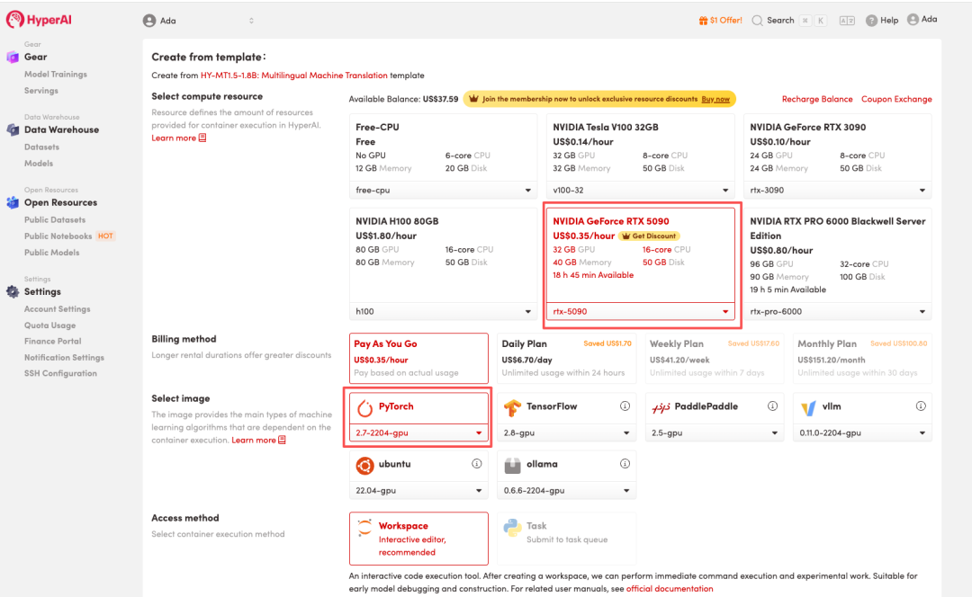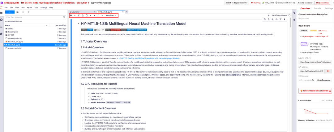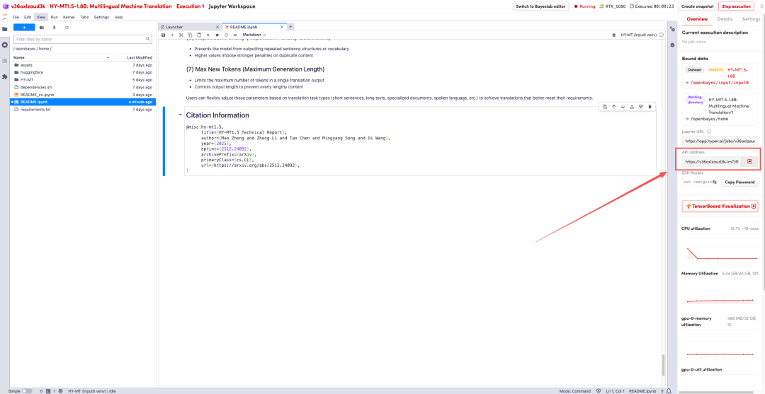 HyperAI 超神经还为大家准备了算力福利,新用户注册后使用兑换码「HY-MT」即可获得 2 小时 NVIDIA GeForce RTX 5090 使用时长,数量有限,快来领取吧!