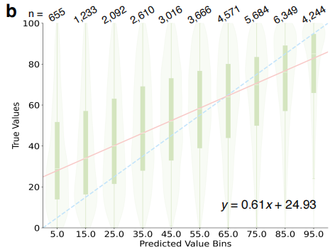 在产率预测与核心组分识别方面,MOSAIC 模型通过解析完整的实验程序文本,实现了对反应产率的量化预测。如下图所示,采用分箱策略后,预测区间中心与真实产率中位数显示出显著相关性(R² = 0.811)。在识别反应关键组分(试剂、溶剂)方面,模型展现出优秀的覆盖能力,在集成前三位专家的预测结果后,能至少部分识别出正确组分的综合成功率高达 94.8% 。值得注意的是,即便预测条件与文献记录不完全一致,其输出也常为化学上可行的替代方案,体现了深层的专业判断力。