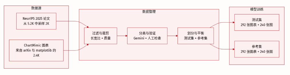 作者使用 PaperBanana(基于 NeurIPS 2025 方法图构建的基准)评估自动化图表生成。该基准涵盖现代 AI 论文中多样且美学复杂的图表。