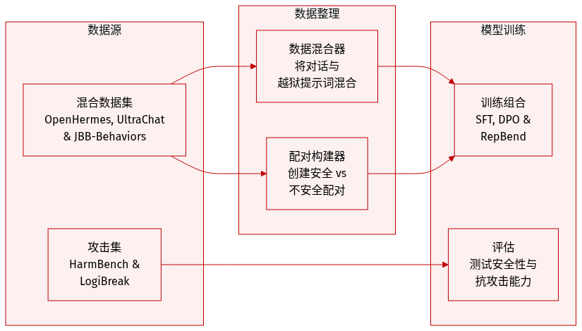 - 训练混合: 训练设置涉及将通用对话数据与特定的 jailbreaking 行为混合,以平衡对话实用性与安全性。
