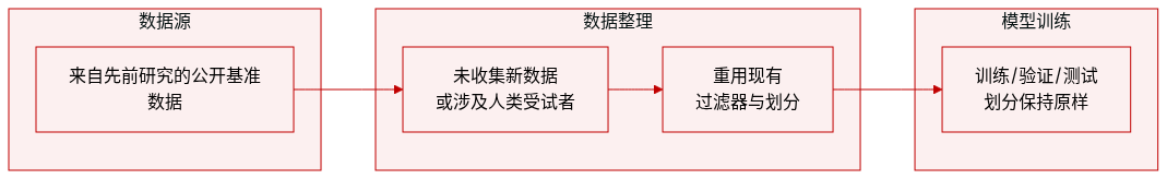 - 数据集构成与处理遵循先前研究的既定实践,未引入新的过滤、裁剪或元数据构建步骤。