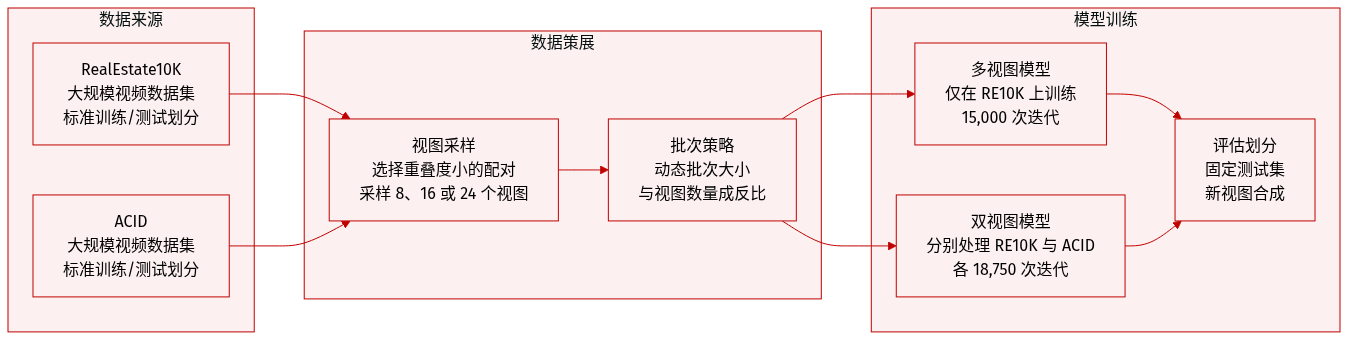 - 在每次迭代中,系统从集合 {2, 3, 4, 6, 12, 24} 中动态采样输入视图的数量,并选择相同数量的目标新视图进行监督。