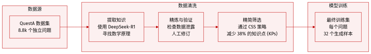 作者通过多阶段的策划和处理流程构建了 KnowRL 训练数据集: