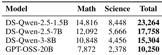 这些实验评估了各种剪枝方法、模型规模和资源分配,以优化工具增强的推理和任务性能。结果表明,STOP 方法通过减少初始路径有效地增强了推理,并且最佳保留率随计算预算和上下文长度的增加而扩展。此外,研究结果揭示了关于数学和科学领域模型专业化的关键权衡,以及模型规模、token 数量与整体准确率之间的非线性关系。