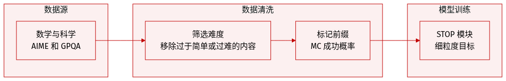作者构建了一个专门的监督微调数据集,通过将推理路径前缀映射到其相应的成功概率,旨在训练 STOP 模块。