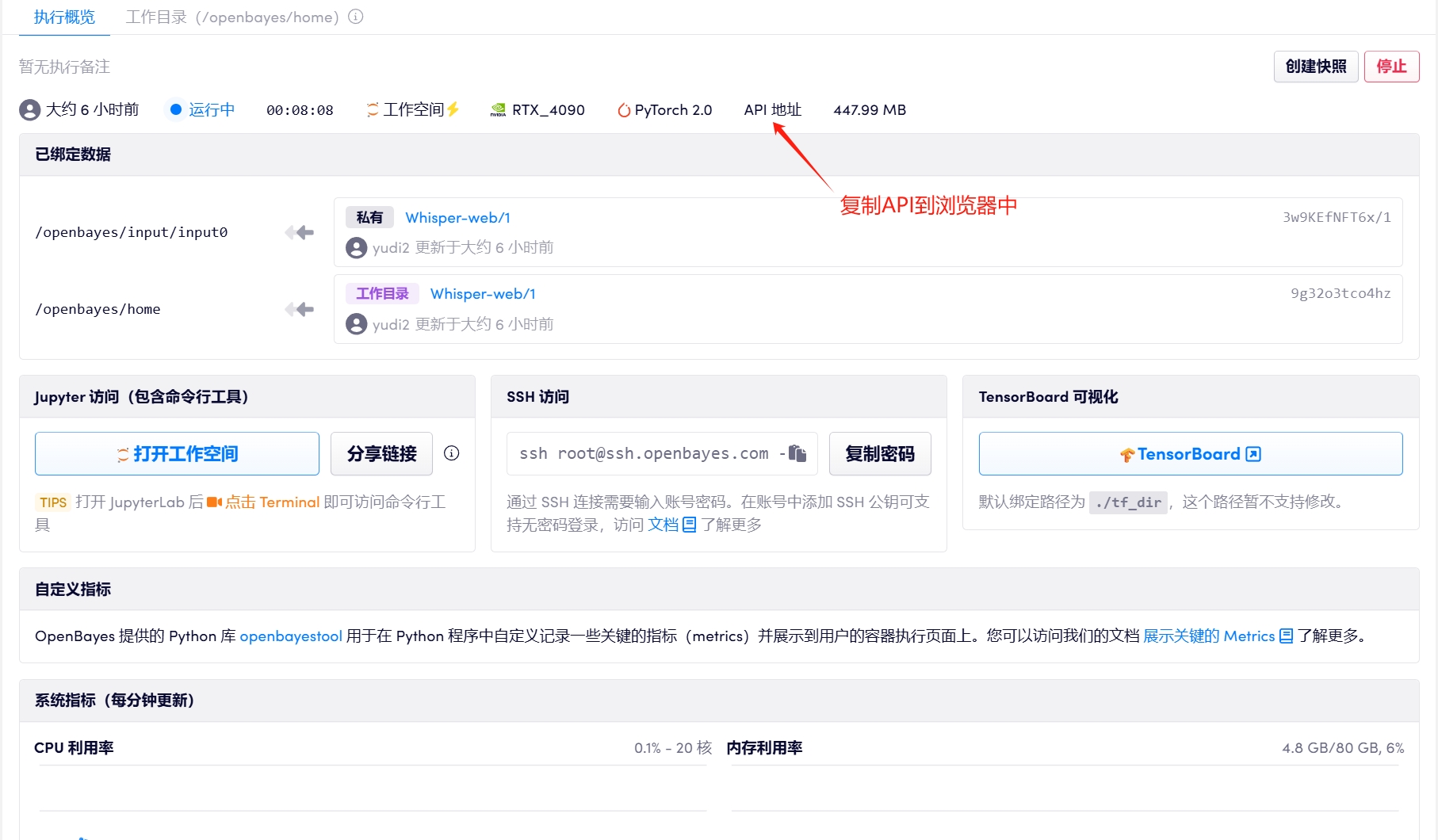 1. 克隆并启动容器后,复制 API 到浏览器中