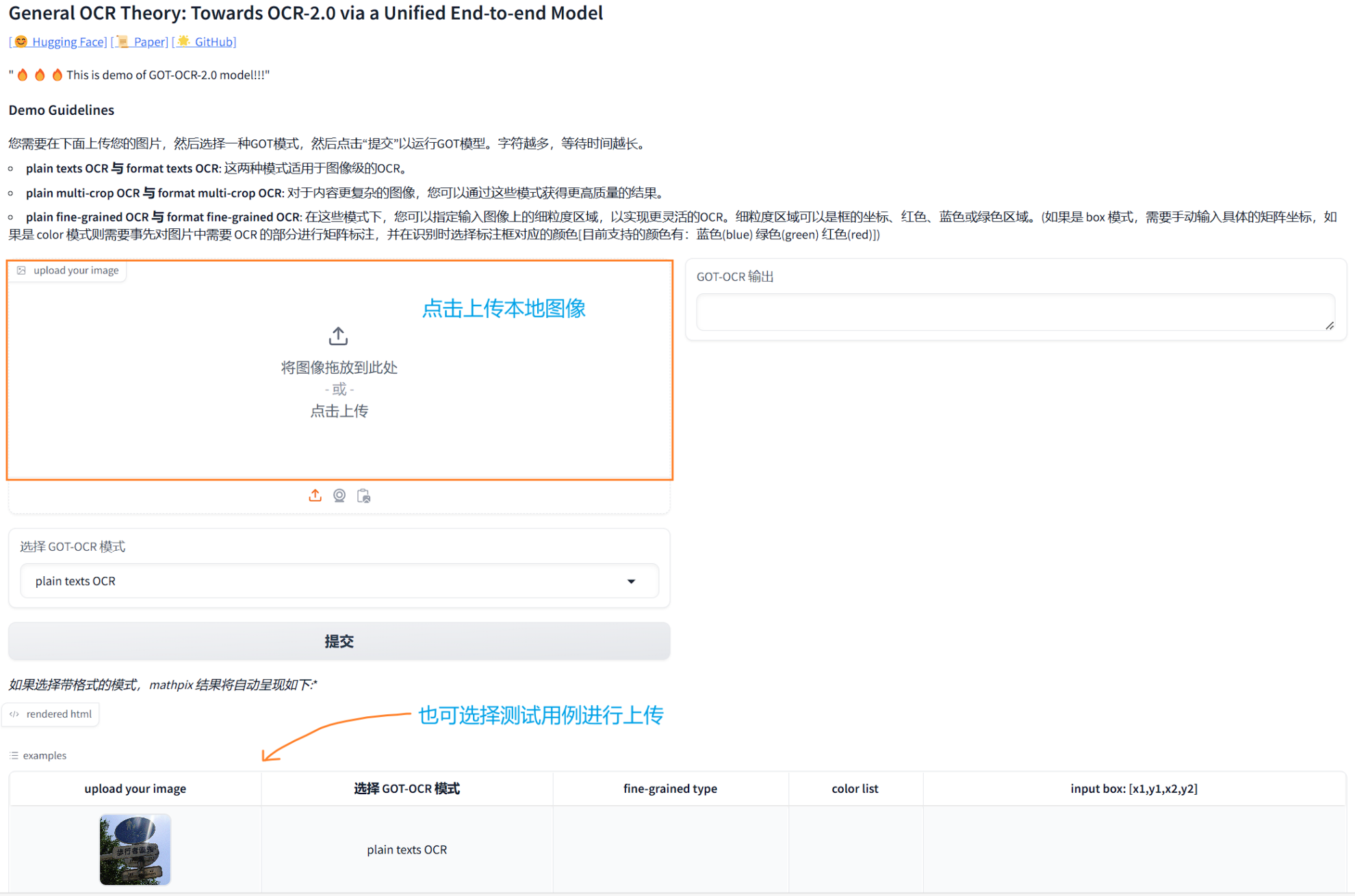 - 多平台支持:支持 CUDA 加速,并与 GOT-OCR2.0 平台集成,可加载预训练模型。
