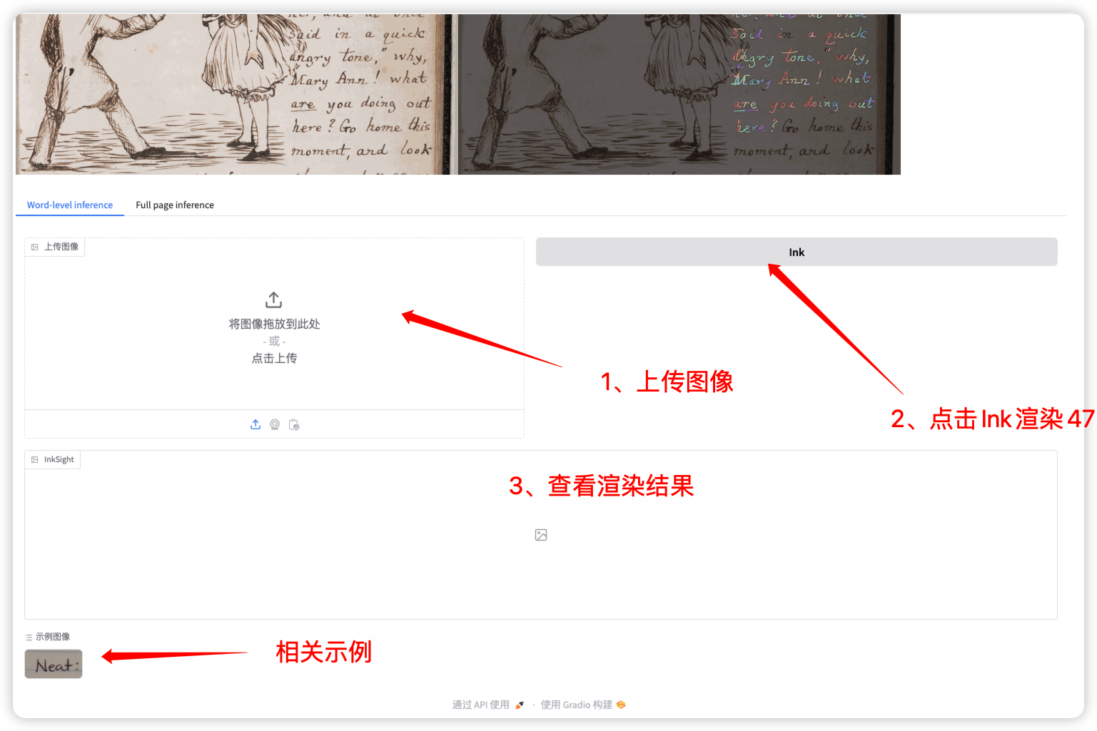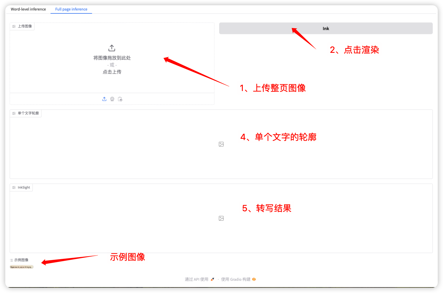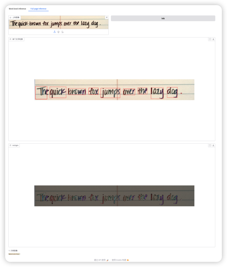 - 整页转写:该功能支持将整页级,输入图像可以为整个书写页面,输出全篇的 InkSight 。