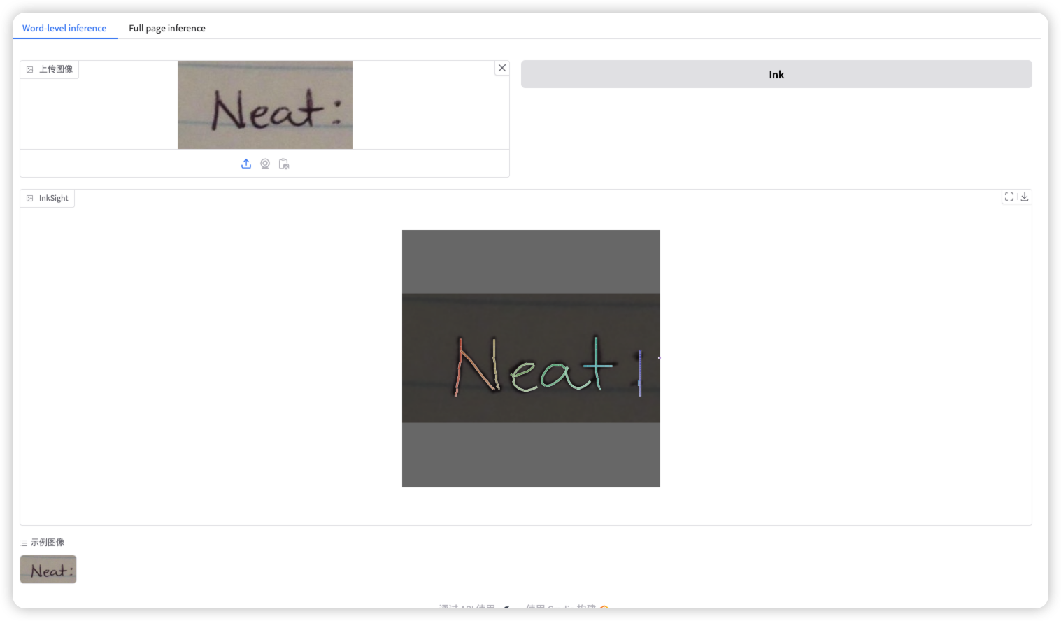 - 单词级转写:该功能支持将单词级,输入图像为单个单词,输出 InkSight 。