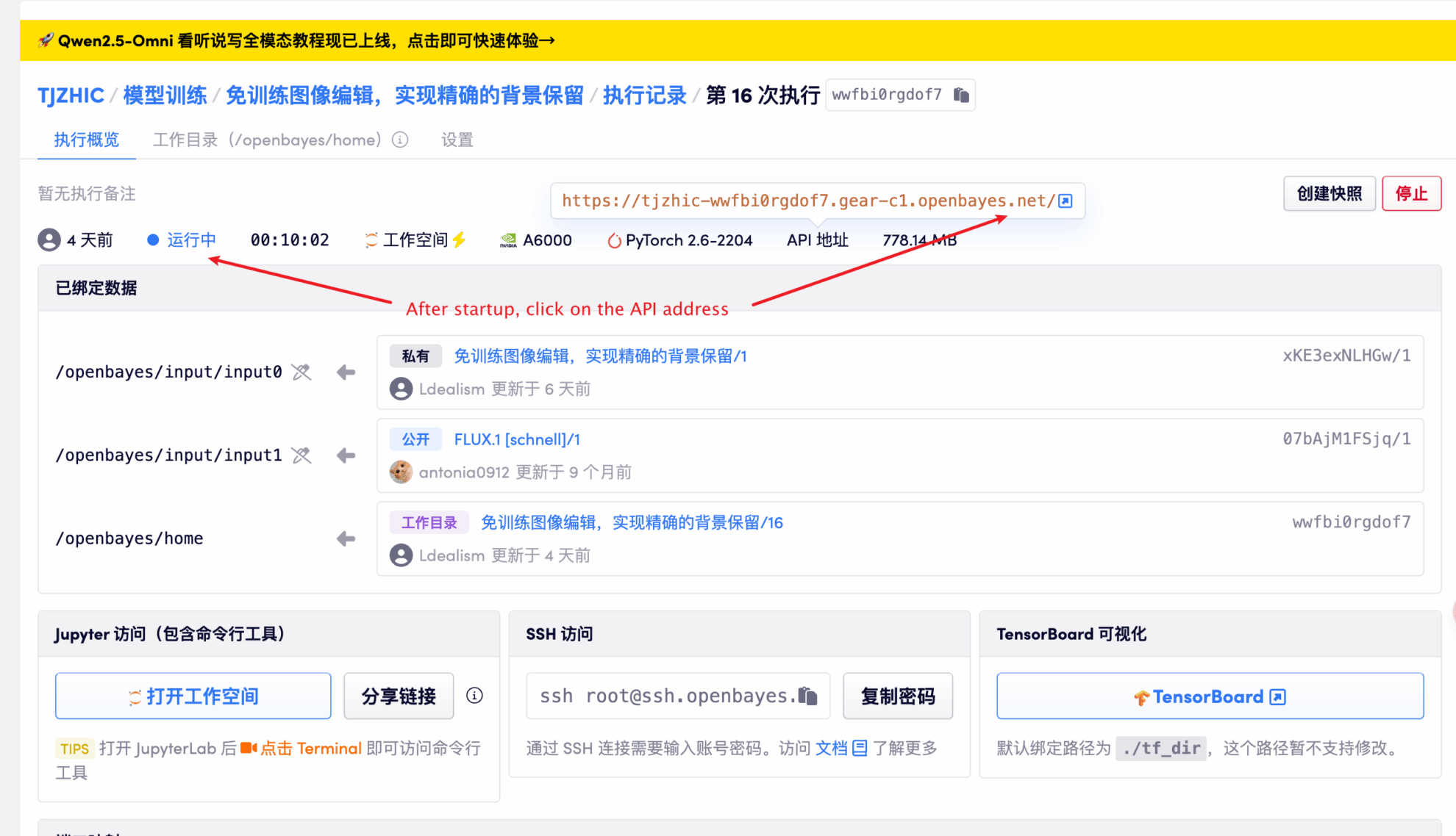 1. 启动容器后点击 API 地址即可进入 Web 界面