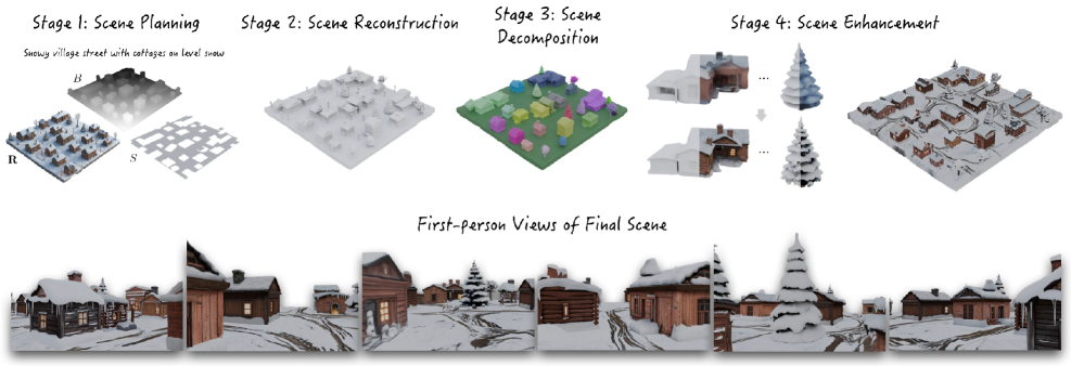 WorldGen 能够直接根据文本提示自动创建大规模互动 3D 世界。该模型将自然语言描述转化为可移动、全纹理化的环境,可以在标准游戏引擎中立即探索或编辑。通过结合大语言模型驱动的场景布局推理、程序生成、基于扩散的 3D 生成和物体感知场景分解,WorldGen 弥合了创意意图与功能性虚拟空间之间的鸿沟——使创作者无需手动建模或专业 3D 专业知识即可设计出连贯且可导航的世界。
