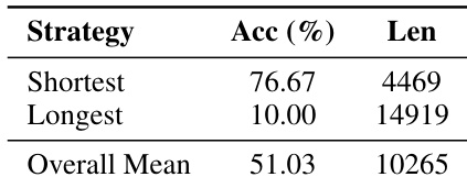 - Applies early stopping to return the shortest completed reasoning path, aligning with the observed accuracy-length anti-correlation.