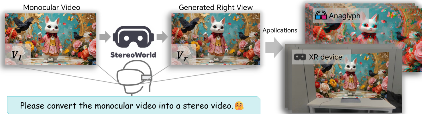 Researchers from Beijing Jiaotong University, Dzine AI, and the University of Toronto propose StereoWorld, an end-to-end framework that converts monocular videos into high-fidelity stereo videos using a pretrained generator with geometry-aware regularization and spatio-temporal tiling, enabling scalable, temporally consistent 3D content generation for XR applications.