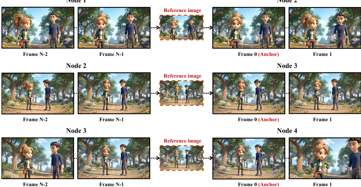 This approach effectively extends the coherence window of any underlying video model by transforming a long-horizon generation problem into a sequence of locally solvable, continuity-preserving subproblems. While this strategy significantly reduces identity drift and layout inconsistencies, challenges such as imperfect lip synchronization and residual misalignment of fine-grained actions remain.
