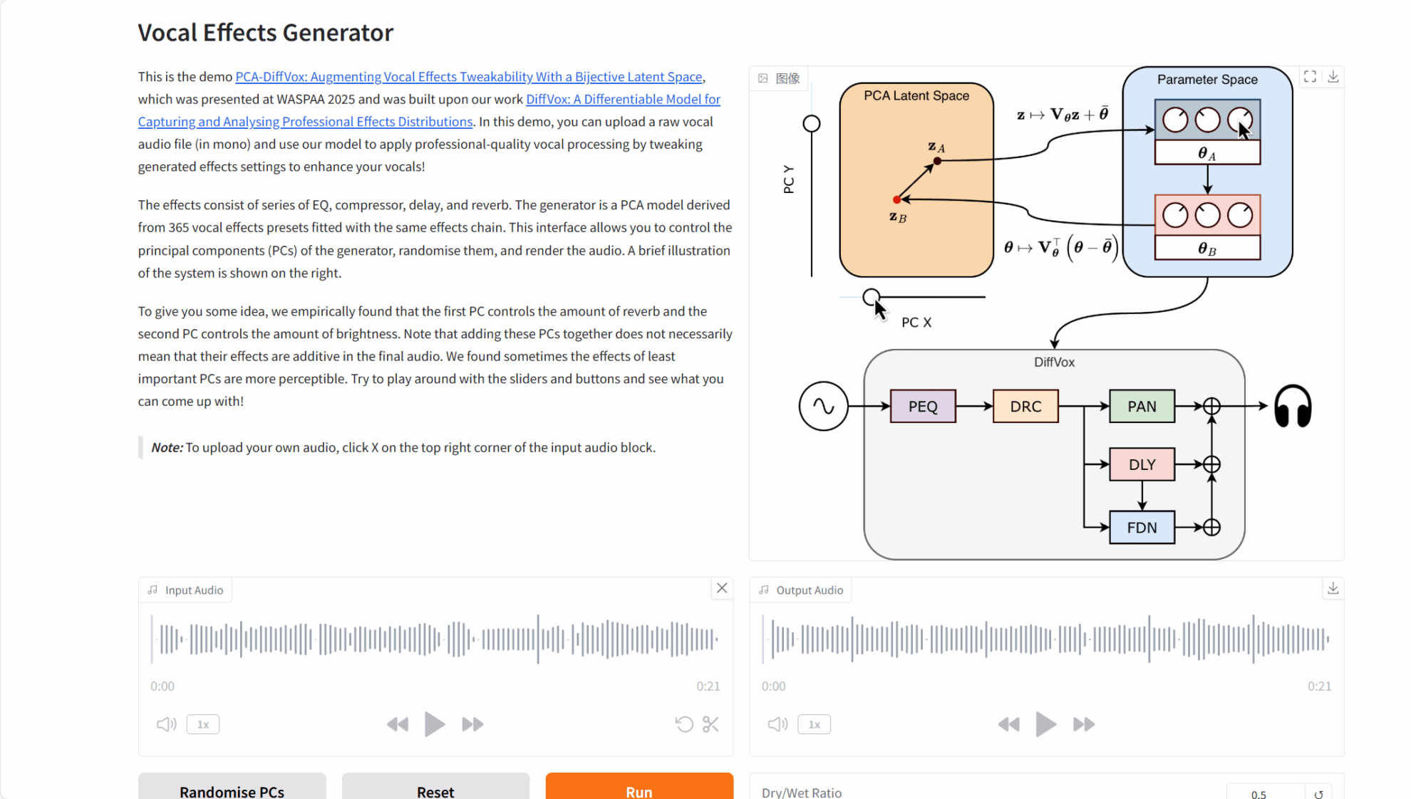 Das DiffVox-Projekt wurde im Mai 2025 von einem Forschungsteam von Sony AI, der Sony Corporation und der Queen Mary University of London gemeinsam veröffentlicht. Die Kernkompetenz dieses Modells liegt in seiner fortschrittlichen Methode zur Optimierung der Inferenzzeit und der innovativen Einführung von Gaußschen Prior-Beschränkungen. Dadurch kann es eine rohe menschliche Sprachaufnahme intelligent in hochwertiges Audio umwandeln, das dem Zielreferenzwert hörbar nahekommt und hinsichtlich der Parameter professionellen Mischstandards entspricht. Es handelt sich um ein fortschrittliches Modell mit Fokus auf den Transfer des menschlichen Sprachstils; die zugehörige Publikation trägt den Titel „…“.DiffVox: Ein differenzierbares Modell zur Erfassung und Analyse von Stimmeffektverteilungen"(Empfangen von DAFx25)" und "Verbesserung der Inferenzzeitoptimierung für den Stiltransfer von Stimmeffekten mit einer Gaußschen Priorverteilung(Akzeptiert von WASPAA 2025).