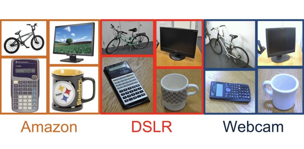 These images mainly come from Amazon (online e-commerce pictures), Webcam (low-resolution pictures taken by webcams), and DSLR (high-resolution pictures taken by single-lens reflex cameras).