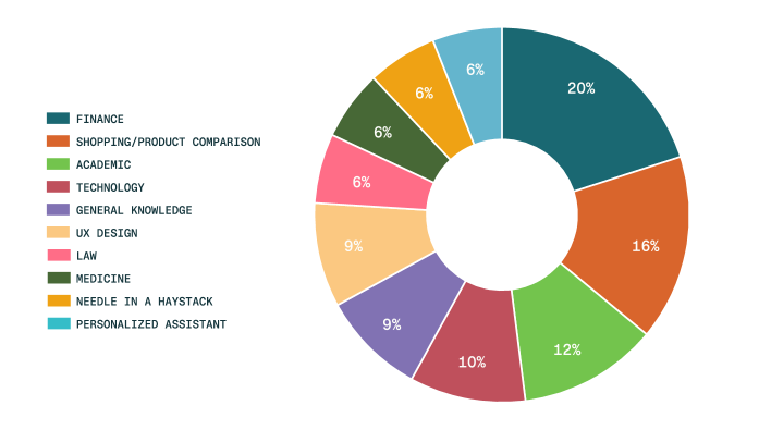The DRACO cross-domain deep research benchmark dataset is a dataset released by the Perplexity team for evaluating complex research tasks. Related papers include... DRACO: A Cross-Domain Benchmark for Deep Research Accuracy, Completeness, and ObjectivityThe aim is to systematically evaluate the comprehensive capabilities of in-depth research systems in terms of accuracy, completeness, and objectivity. This dataset contains 100 complex research tasks, covering 40 countries and regions across five continents, and encompassing 10 major application areas including finance, shopping/product comparison, academia, and technology. Each task corresponds to a multi-step, multi-source information retrieval and analysis problem, and is accompanied by evaluation criteria designed and validated by 26 domain experts. Each criterion contains an average of approximately 40 evaluation metrics, providing fine-grained evaluation of the model output from four dimensions: factual accuracy, breadth and depth of analysis, presentation quality, and citation quality. The task distribution by field is shown in the following figure: