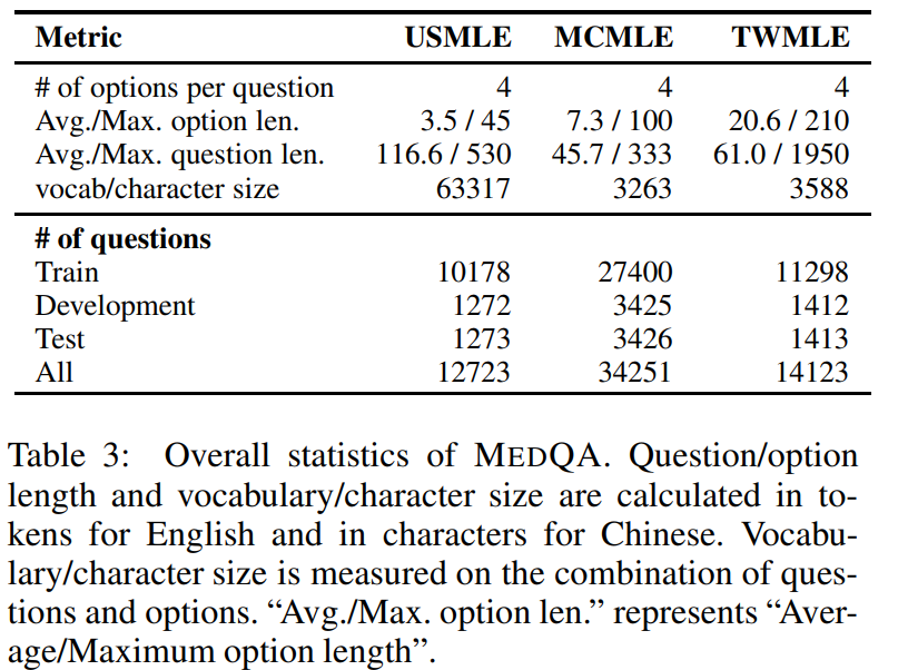 The MedQA dataset simulates the style of the United States Medical Licensing Examination (USMLE) and is designed to evaluate the model's understanding and application of medical knowledge. The dataset is collected from professional medical examinations and covers English, Simplified Chinese, and Traditional Chinese, containing 12,723, 34,251, and 14,123 questions, respectively.