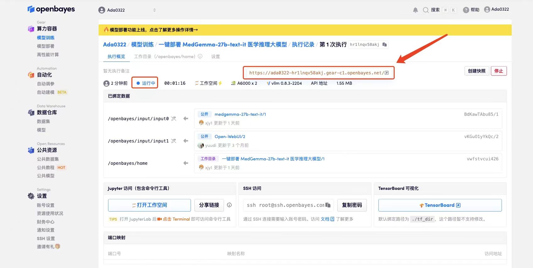 We have also prepared surprise benefits for new registered users. Use the invitation code "MedGemma" to register on the OpenBayes platform.You can get 4 hours of free use of RTX A6000 (the resource is valid for 1 month).Limited quantity, first come first served!
