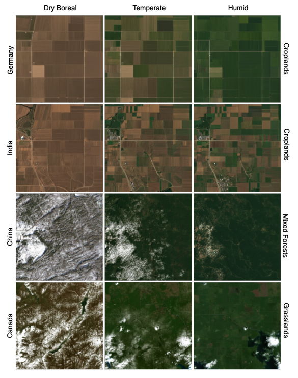 To solve the above problems,A team from the Technical University of Munich in Germany and the University of Zurich in Switzerland proposed a new method to generate satellite imagery conditioned on geographic climate cues using Stable Diffusion 3 (SD3), while creating EcoMapper, the largest and most comprehensive remote sensing dataset to date.The dataset collects more than 2.9 million RGB satellite image data from Sentinel-2 from 104,424 locations around the world, covering 15 land cover types and corresponding climate records, laying the foundation for two satellite image generation methods using a fine-tuned SD3 model. By combining synthetic image generation with climate and land cover data, the proposed method promotes the development of generative modeling technology in remote sensing, fills the observation gap in areas affected by persistent cloud cover, and provides new tools for global climate adaptation and geospatial analysis.