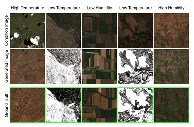 The goal of this research is to synthesize satellite imagery conditioned on geographic and climate metadata to enable realistic predictions of environmental conditions.The researchers had to address two key tasks: text-to-image generation and multi-conditional image generation.