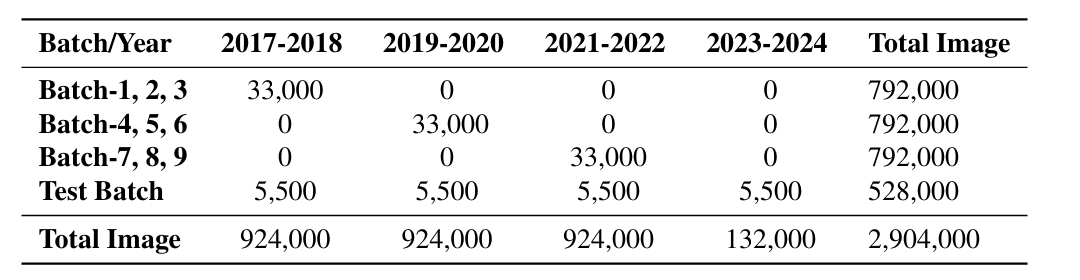 in,The training set contains 98,930 geographical points, and the observation period for each point is 24 months.The researchers selected one observation per month for each location over two years, based on the days with the least cloud cover, resulting in a sequence of 24 images per location. The two-year observation period was randomly distributed between 2017 and 2022.