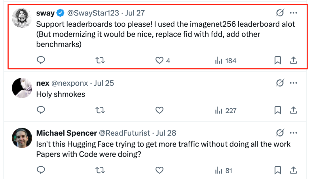 As a result, many users are not impressed by Hugging Face's heavily promoted Trending Papers feature.According to the main operators of Trending Papers, the section primarily focuses on tracking popular papers and linking them to their code implementations on GitHub. At present, it does not appear to have the ranking display feature that Paper With Code offers.“The current functionality is not detailed enough. I typically use Paper With Code's SOTA to identify the strongest models in different fields, which allows me to quickly determine which models our project should be compared against,” explained one user.