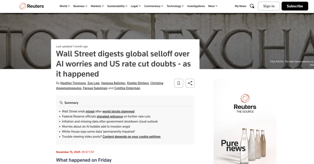 "There is indeed some bubble in the market in terms of valuation and expectations. We have passed the core of earnings season and seen many companies exceed earnings expectations, but we have not seen a significant rise in stock prices, so I think it is just that the bubble is gradually deflating," the Managing Director of Investment Strategy at Pathstone told Reuters.