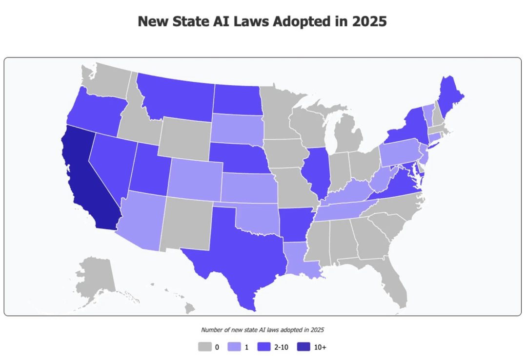 With a long-standing absence at the federal level, AI regulation in the United States exhibited a clear "local-first" characteristic in 2025. According to the Transparency Coalition's "2025 State AI Legislation Report," by the end of 2025, 27 states had signed 73 AI-related bills, covering multiple areas such as model transparency requirements, restrictions on deepfake content, prevention of algorithmic discrimination, and accountability for automated decision-making.For tech companies, this state-led regulatory path means a sharp increase in compliance costs—the same AI system may need to meet dozens of different, even conflicting, legal standards simultaneously.