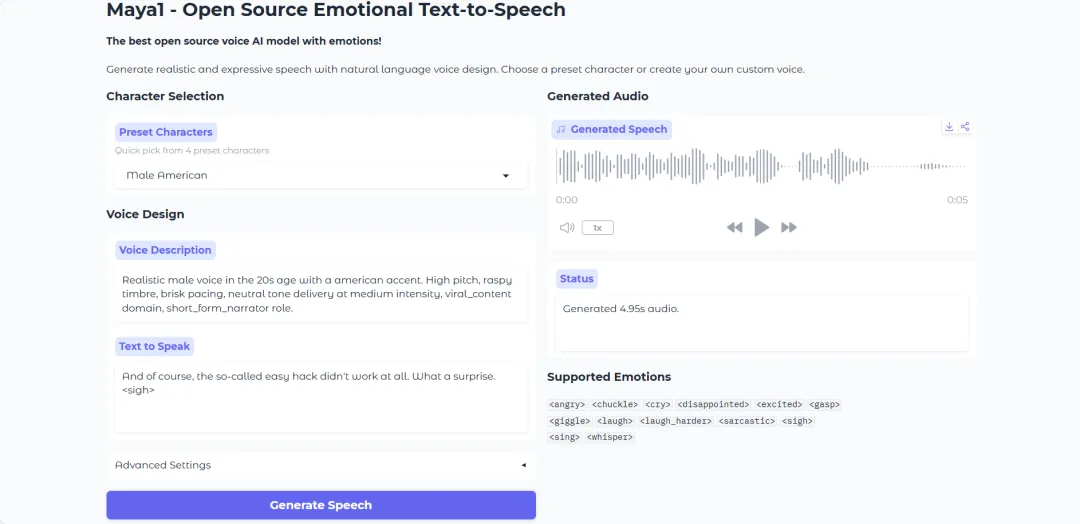 2. Maya1: A highly realistic and emotional voice generation service